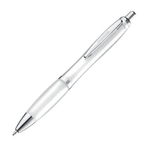 Długopis plastikowy MOSCOWDługopis plastikowy z antypoślizgową gumką oraz z błyszczącymi elementami. Wyposażony w system typu kilk oraz wkład w kolorze niebieskim. Długopis dostępny w bogatej gamie kolorystycznej.